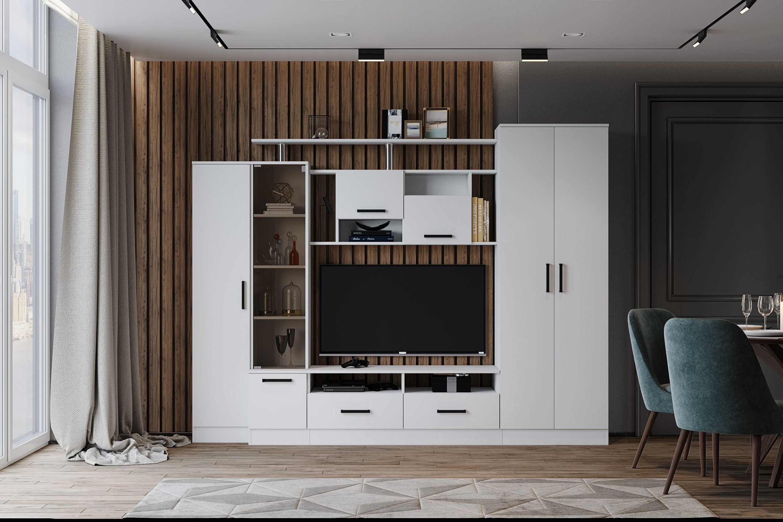 — Продуманное цветовое решение, гарантирующее совместимость гостиной с практически любым современным интерьером