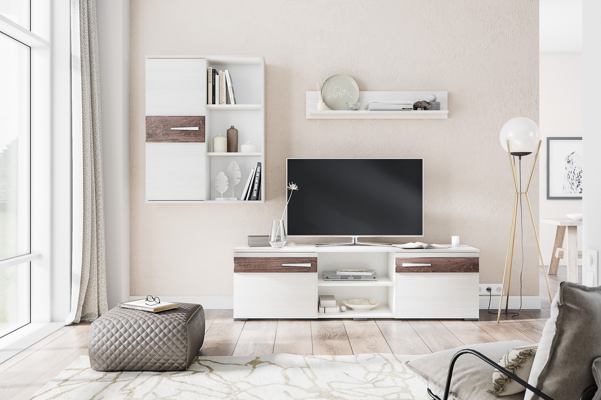 — Цвет исполнения ЛДСП «Ясень Анкор светлый» с натуральной структурой древесины и МДФ накладки в пленке ПВХ «Дуб Бомонд какао»