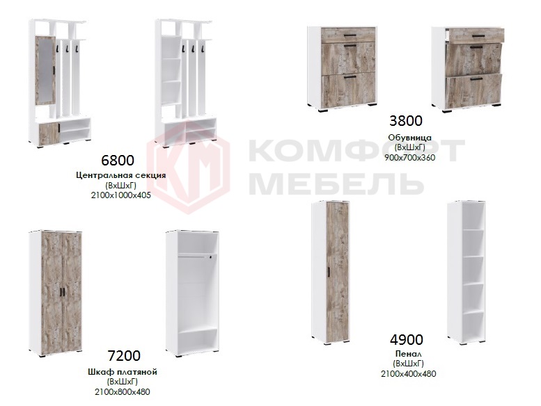 Цвета, материалы исполнения-Корпус ЛДСП Белый с тиснением «Древесные поры», Фасад ЛДСП Дуб Юкон