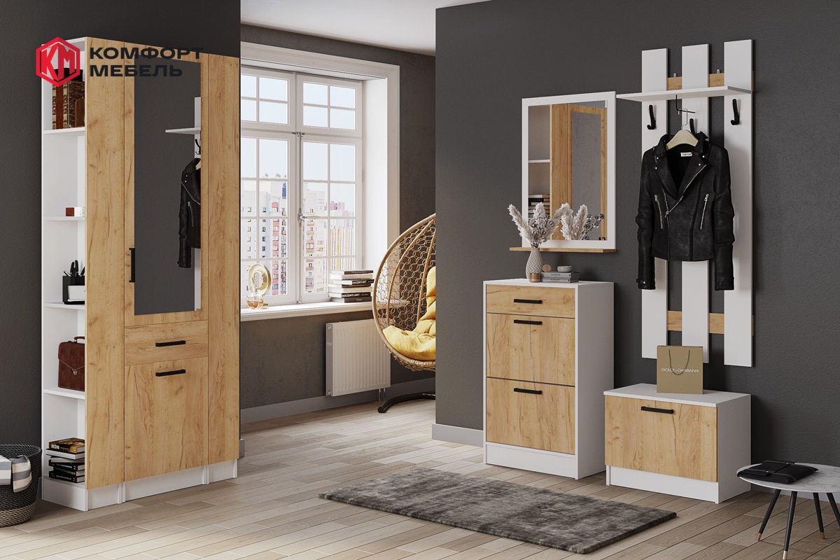 Внутренняя и крепежная фурнитура-Штанга выдвижная металлическая (шкаф 2х ств.), овальная металлическая стационарная (угловой шкаф), механические барные кронштейны, пластиковые кронштейны для обувниц, навесы для зеркала в комплекте