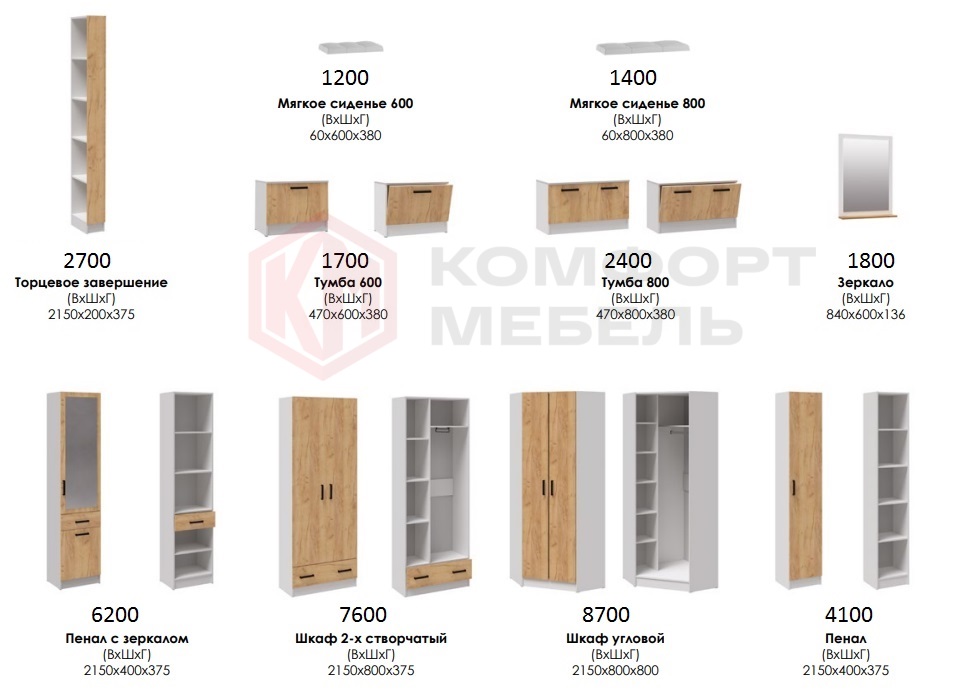 Особенности-Большой выбор функциональных шкафов. Глубина боковины углового шкафа 380 мм. Тумба 600 и 800 можно доукомплектовать мягким сиденьем шириной 600 и 800 соответственно. Мягкое сиденье выполнено из ЭКОкожи цвета Милк.
