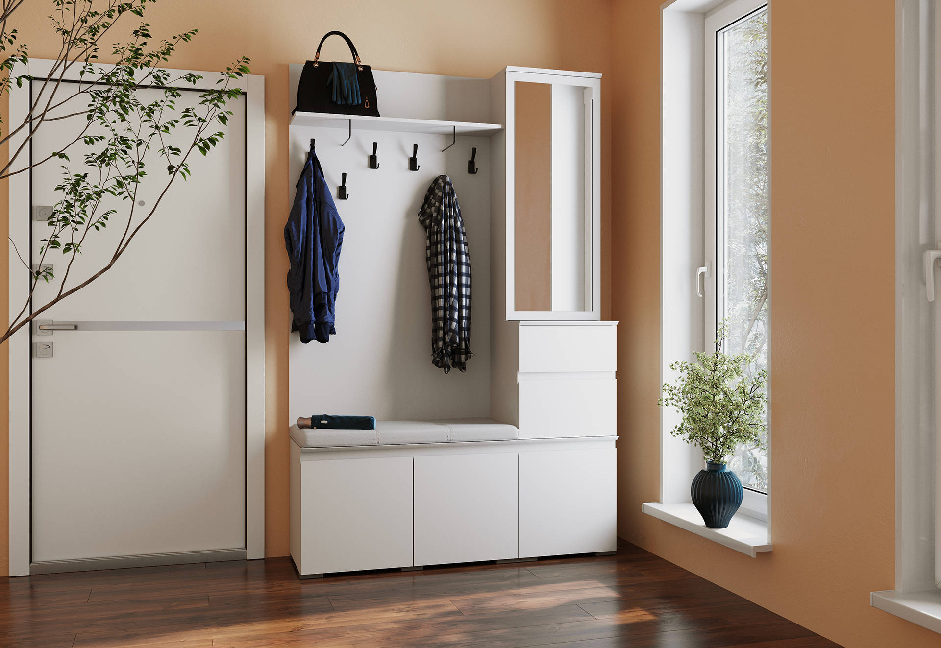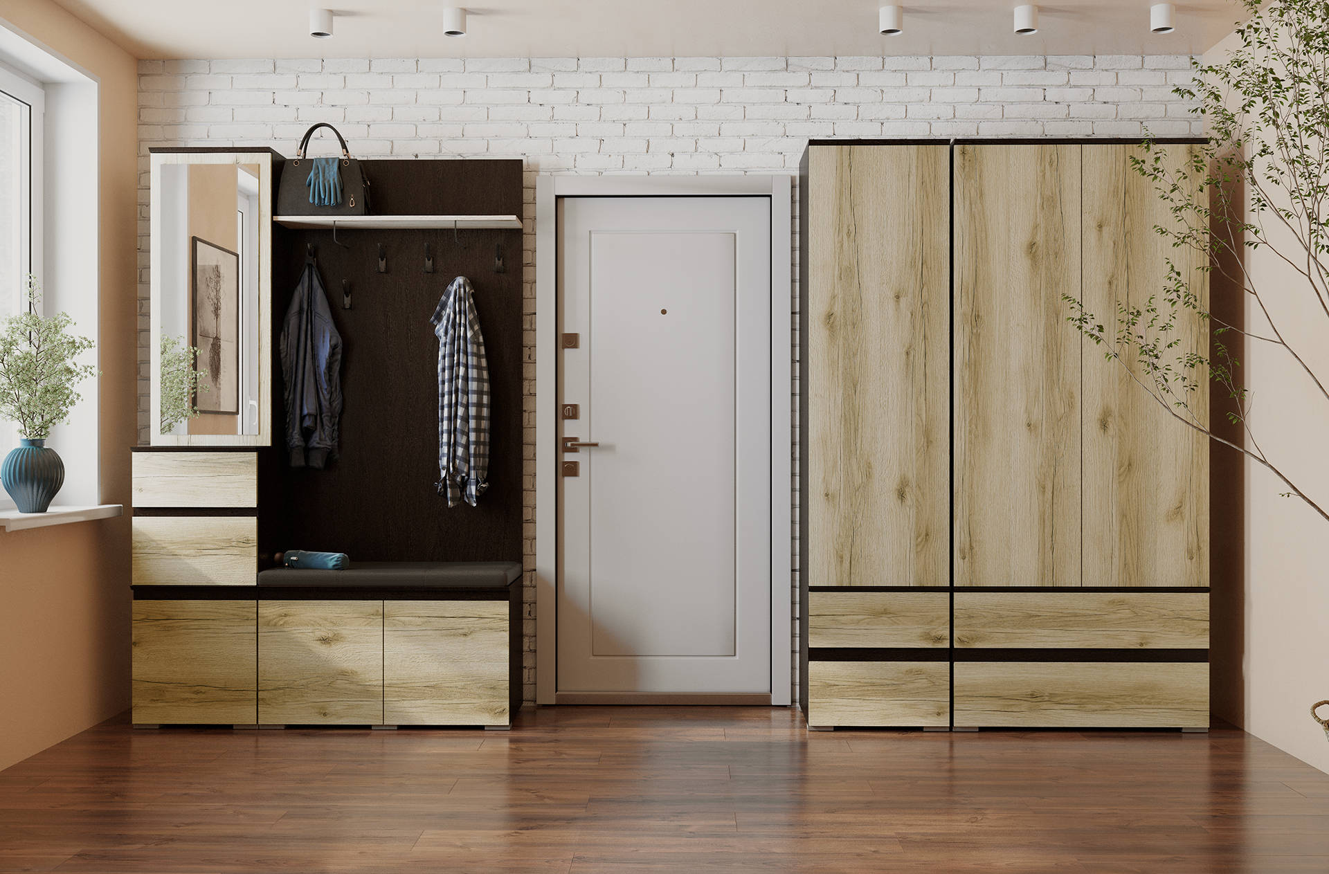 — При желании модульный ряд прихожей можно доукомплектовать шкафами из гостиной одноименной серии