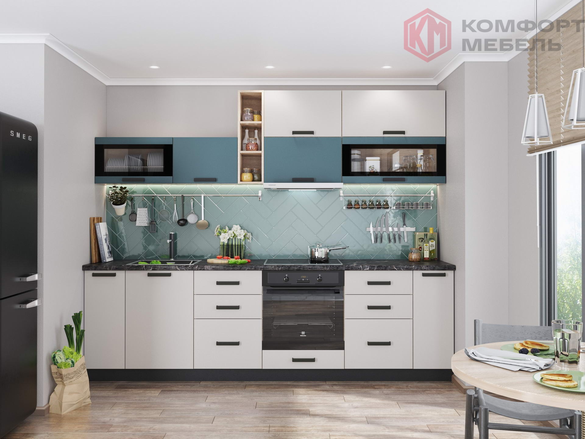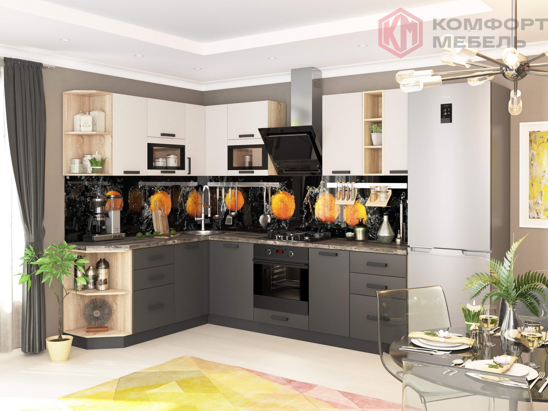 Элегантный и изысканный древесный декор корпуса «Дуб Сонома» в сочетании с насыщенными матовыми цветами фасадов открывают широкий простор для смелых экспериментов.