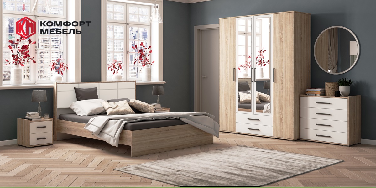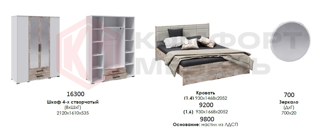 Особенности-Царги кровати не до пола, основание кровати-настил из ЛДСП. Модуль зеркало круглой формы
